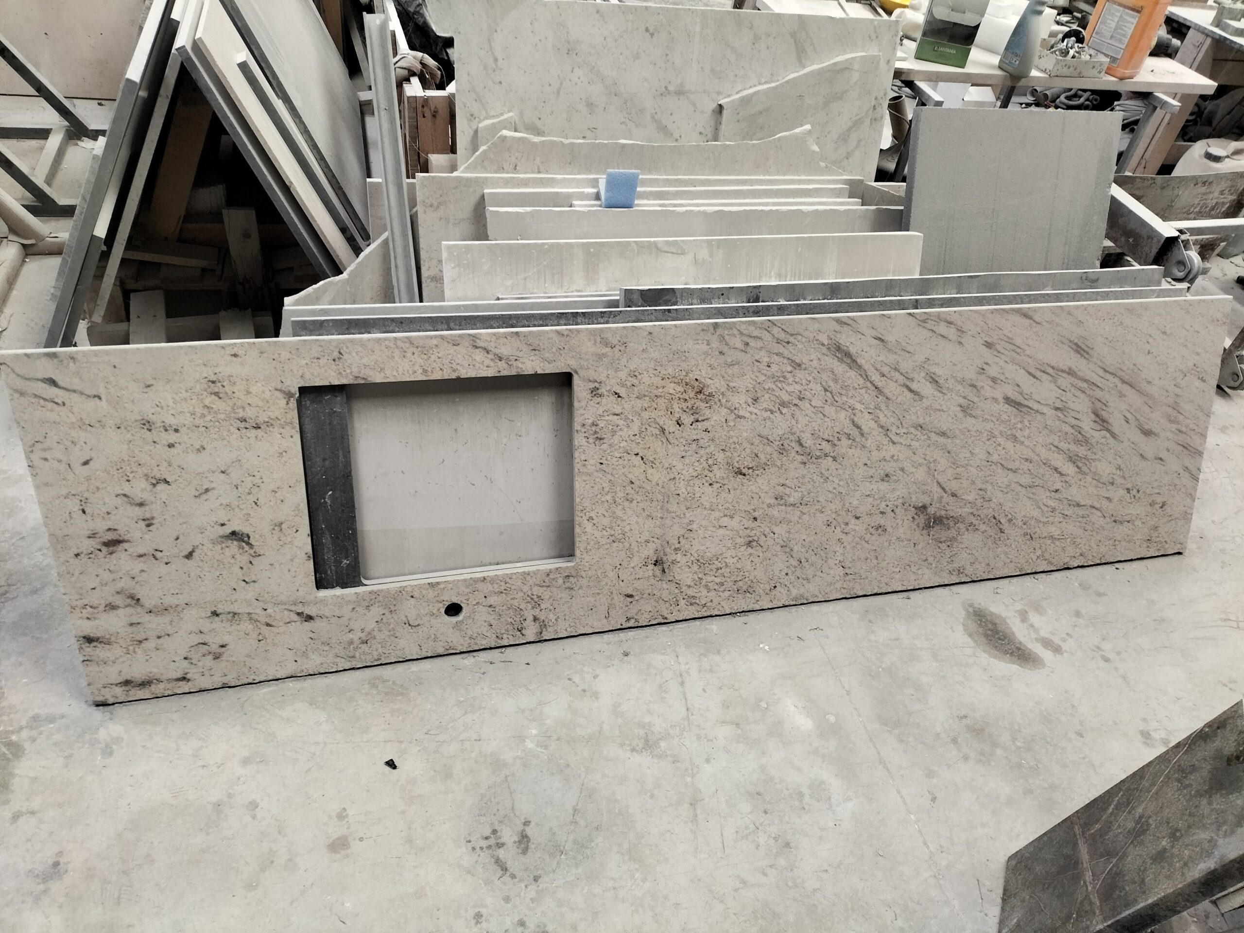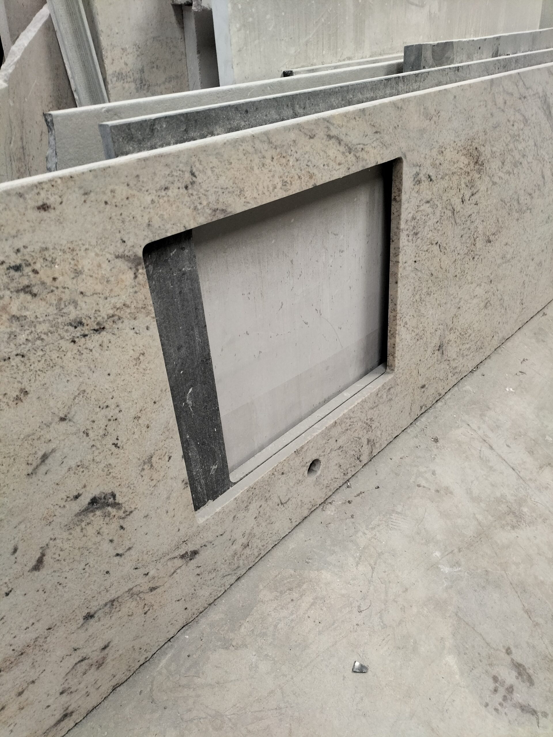 Granit Shivakashi beige finition velours en 2cm, découpé par notre Marbrier pour VOTRE PLAN DE CUISINE.